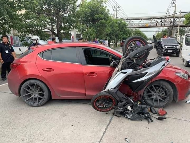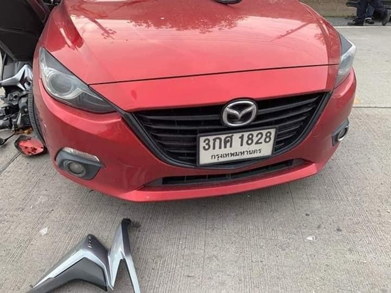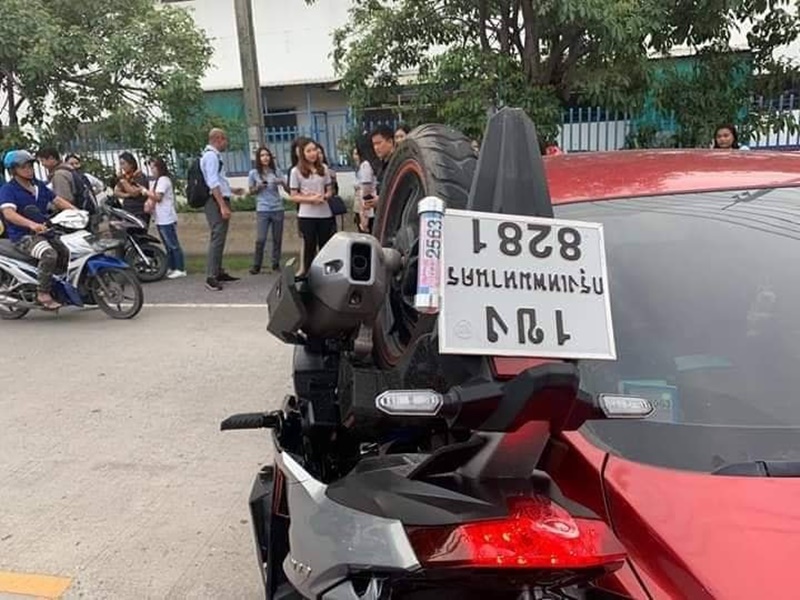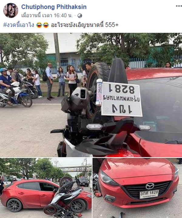 ชนกับรถมอเตอร์ไซค์ สีเทา-ดำ เลขทะเบียน 1ขง8281 พร้อมระบุว่า "งวดนี้เอาไง