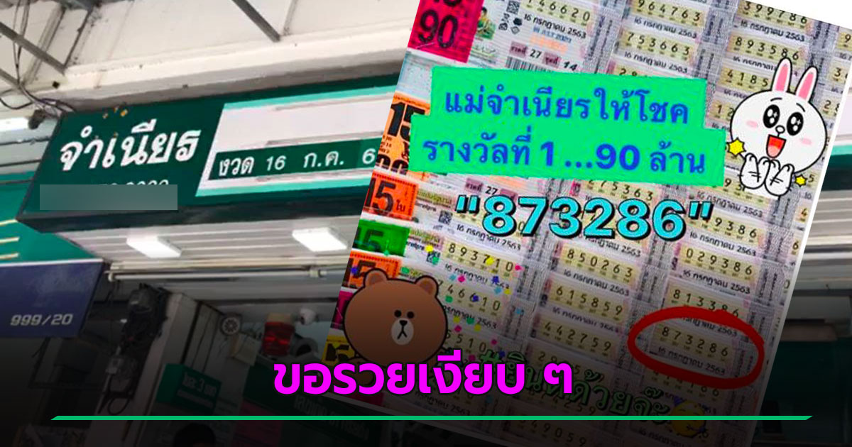 เมื่อวันที่ 16 กรกฎาคม 2563 เฟซบุ๊ก แม่จำเนียร ล็อตเตอรี่ ของร้านขายลอตเตอรี่ชื่อดังในพื้นที่ จ.สมุทรปราการ ได้โพสต์ภาพและข้อความแสดงความดีใจกับลูกค้าของทางร้านที่ถูกลอตเตอรี่รางวัลที่ 1 งวดวันที่ 16 กรกฎาคม 2563 หมายเลข 873286 โดยได้รับเงินรางวัลรวม 90 ล้านบาท